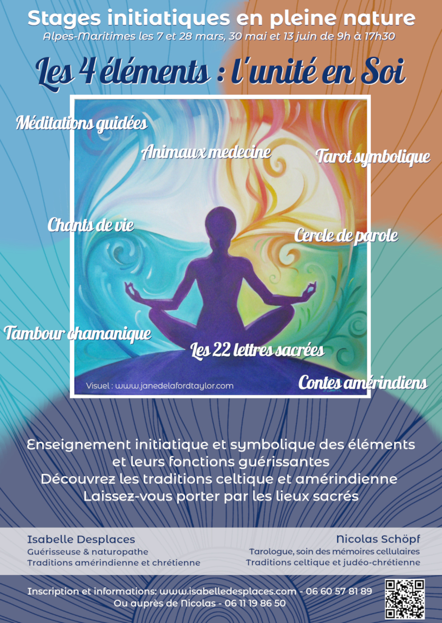 Plongez au cœur de la Nature pour vivre un enseignement profond, initiatique et inspiritualisant ! Mon ami Nicolas Schöpf et moi-même sommes heureux de vous accueillir pour cette série de 4 journées dédiées à travailler avec les 4 éléments selon les traditions amérindiennes et celtiques.